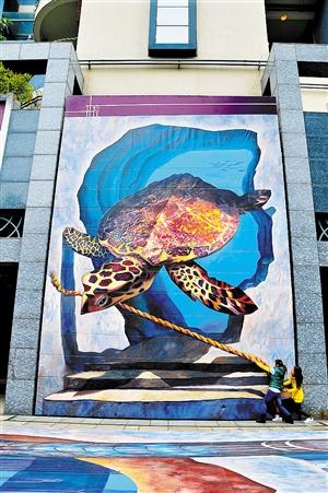 在创作手法上,兄弟俩依旧是根据现有场地“玩文章”,以“创意”融合“特色”来寻求传统意义上的突破。记者在现场看到,尽管由20余幅画纸组成的地画尚在拼接之中,一个幻变的海底都市一角却已呈现眼前,画作巧妙地以礁石为界,几叶小舟荡然摩天楼宇间,穿插以浪漫、梦幻、奇特等绘画元素,实现与海底景观、海洋生物、海底建筑的互动体验,让游客在观赏的同时,拥有“海居梦想”的奇妙体验。