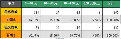 再看衍生品价格(见表2)——单价30元以下的产品占60%以上,这个比例体现了漫画衍生品开发总体呈低端化的趋势。尽管这一价格区间的产品是市场销量最好的产品,但和当前国产漫画受众在该年龄段的消费水平很不相称。