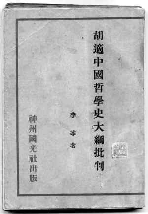 接下来,李季意气激昂的,把他在德国留学期间学到的辩证唯物论的观点和辩证法的方法,用社会发展的观点和阶级分析的方法,兼以古籍考证的方式,逐章逐条批评胡适《中国哲学史大纲》。据此,形成了一个框架明确、巨细兼顾的批判总纲,以十一个章节的规模,搭建出“反胡适”体系,将胡适推上思想史的“手术台”。
