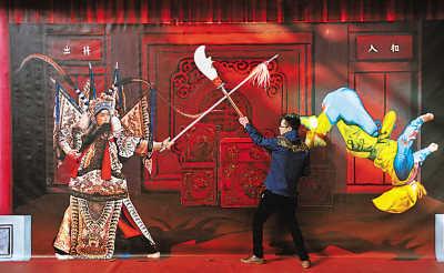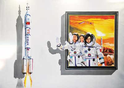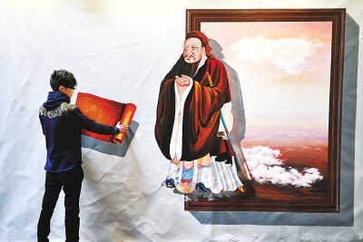 近日,“中国梦3D艺术画展爱国主题巡展长沙站”在长沙曙光798艺术馆展出,50多幅3D绘画作品以时间为轴线,再现中国历史上的重大事件。展览将持续到明年3月。图为工作人员分别在孔子(图1)、航天科技(图2)、京剧(图3)主题作品前留影。 新华社记者 李 尕摄