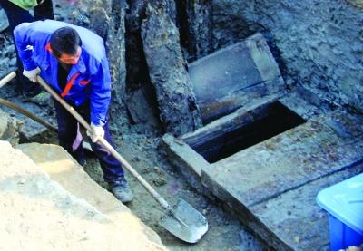 扬子晚报12月26日A42版刊登了六合区方州广场地铁口施工于24日开挖出一个古墓,里面不仅有大量棺木,还发现了一把1米多长的宝剑。当地警方得知此事后迅速封锁工地,停止开挖,并与南京市文保部门联系。昨天,南京市文物部门工作人员到达现场组织专业人员对古墓进一步挖掘。很多看过扬子晚报报道的读者对此事产生浓厚的兴趣,希望了解宝剑的主人是谁,宝剑入何处,古墓内还有啥其它宝物,扬子晚报记者昨天下午再探古墓开挖现场。