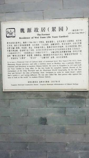 魏源"海国图志"在扬州絜园写完 位于新仓巷37号