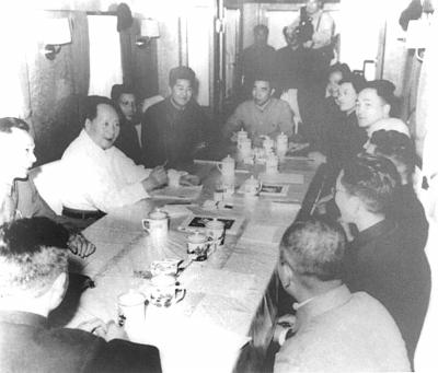 上世纪60年代初,毛泽东在专列上召开调研座谈会