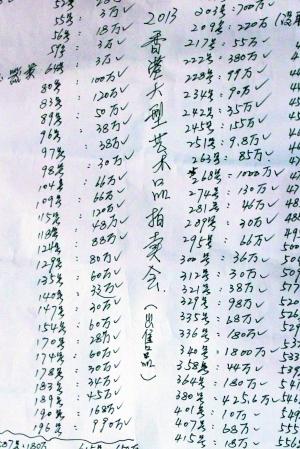 尊藏公司列出拍卖会上参拍的藏品价格。