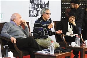 新民说文化沙龙第二场:“国家”中的“国民性”现场。从左至右依次为:钱理群、何怀宏、熊培云(柴春霞 摄)
