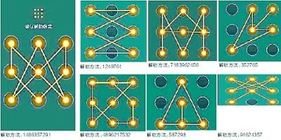 有智能手机的网友都知道,其中有一项安全设置屏幕锁为一笔连成的图形。九个小点,一笔画成,不能重复。不少网友锁屏都是“Z”、“N”等,手机一旦丢失,特别容易被破解。