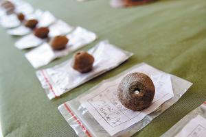 桥山遗址发掘出土的纺轮。本报记者 武威 摄
