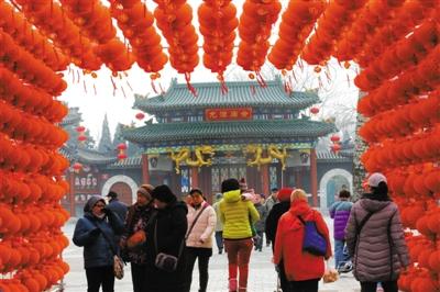 北京龙潭庙会搭"灯笼门" 悬挂灯笼1.5万余个(图)