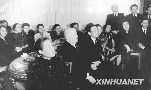 参与互动(0) 1950年,中国驻苏联大使王稼祥(前左三)与赴苏联访问的王若飞夫人李培之(前左一)、作家丁玲(右二)等和苏联友人在一起(资料照片)。