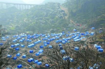 1月27日,在贵州镇远县报京侗寨,临时救灾帐篷已经搭建而起。 新华社 发