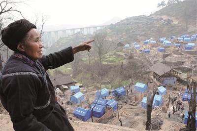 图为81岁的受灾村民周木英向记者介绍火灾发生时的情景。