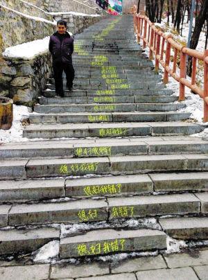 300级台阶写满"媳妇我错了" 路人:犯了多大错