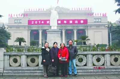 左图:昨日,王玉芳和她的三个子女再次来到武汉剧院前合影留念 郁胜文 摄