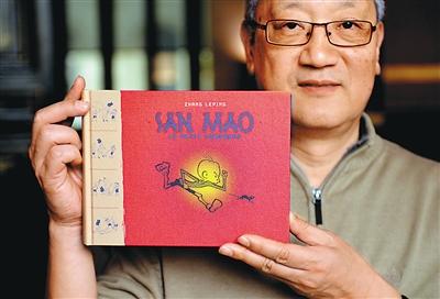图为张乐平之子张慰军在巴黎展示该漫画的法文版书册。