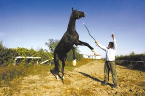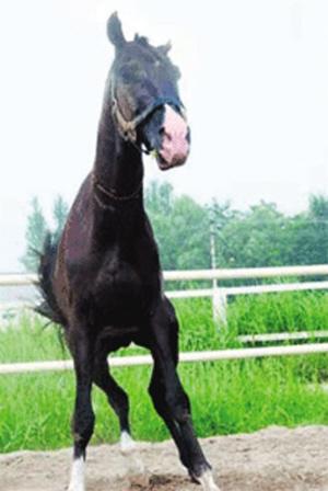 2002年7月,一匹8岁黑色雄性“汗血宝马”——阿赫达什(宝石之意),从它的故乡中亚土库曼斯坦,由空中穿越古丝绸之路,来到中国。这匹马是土库曼斯坦总统作为中土和平友好的象征赠送给我国领导人的。说起“宝石”的血统,可真是不一般:它的祖先曾是苏军著名元帅朱可夫的坐骑。朱可夫骑着它在乌克兰打败德军名帅曼施坦因,骑着它参加过解放柏林的入城式。“宝石”的系谱表明,它的先辈都曾被收录在名马档案,“宝石”爷爷的爷爷曾获得20世纪60年代奥运会马术比赛盛装舞步的冠军。