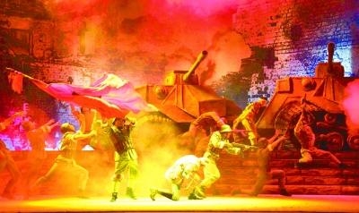 陶行知的扮演者赵东海则以声情并茂的唱、念、做,把“爱满天下”的人民教育家形象塑造得真实可信。此外,扮演陈营长的王俞英、扮演阿珍的楼妮、扮演阿强的应均和扮演阿婆的付佳都非常投入,充分展示了浙江京剧团“一棵菜”的团队精神。而在剧中扮演淞沪会战国军抗战将士的浙京武戏演员们,更是充分展示了其翻打腾跃的扎实基本功,连续的小翻甩脆,叠加腾翻的小翻倒插虎、垛子抢背、垛子趴虎砸三险等高难度技巧,让压轴武戏“苏州河血战”荡气回肠。