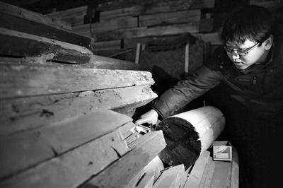 在院里还有一堆木头柱子,一些柱子的根部已经腐烂不堪,伊金栋介绍,这些柱子是已经糟朽的构件,在重建故居时将通过文保专家论证和开发商、文物古建公司多方讨论,决定是否使用。