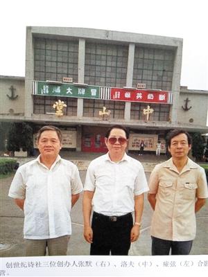 ▲创世纪诗社三位创办人洛夫(中)、张默(右)、痖弦(左)合影。(受访者供图)