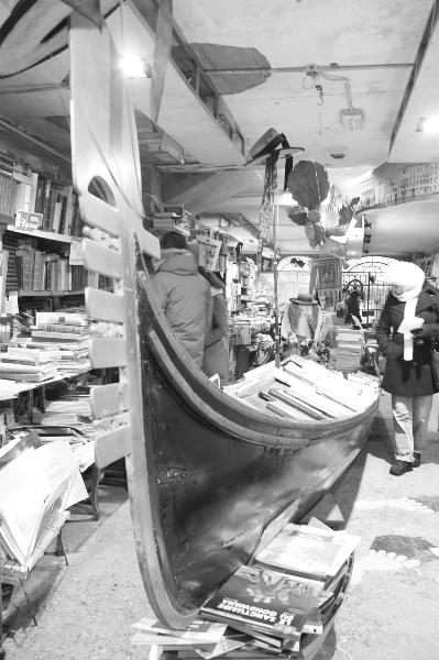 意大利威尼斯一书店用“贡多拉”作书架(图)