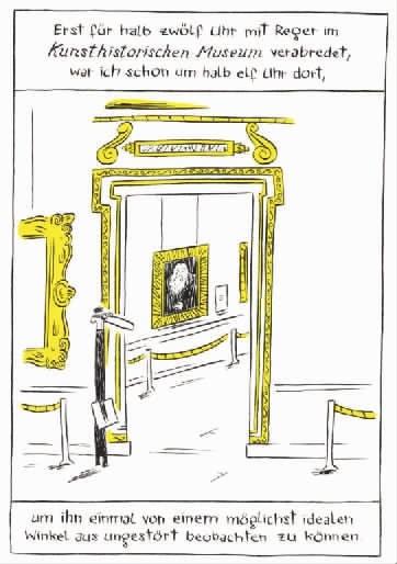 尼古拉斯·马勒(Nicolas Mahler)为朔尔坎普出版社所出伯恩哈德绘本小说《历代大师》所画的第7页。
