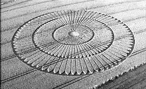 麦田怪圈,在麦田或其他农田上,通过某种力量把农作物压平而产生出几何图案。最早的麦田怪圈是1647年在英格兰发现的,常在春天和夏天出现。