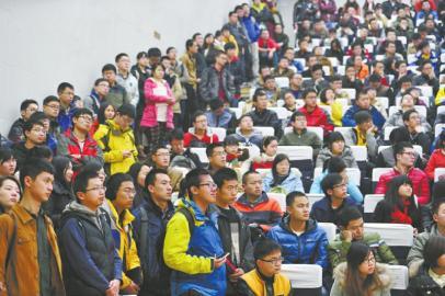 2月25日,电子科技大学清水河校区,大学生们挤满了阶梯教室聆听王蒙的讲座。