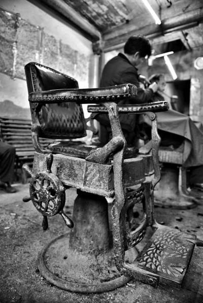 一边是花里胡哨的装潢设计,发型时尚的帅哥店员,高档的设备和各式药水的造型工作室,人满为患,人声嘈杂。一边则是老木框门,旧式铁椅,慢条不紊的剃头刮面,零星来客,却又怡然自得的享受。