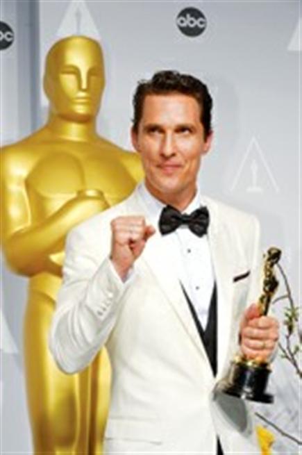 美国男星马修·麦康纳凭借影片《达拉斯买家俱乐部》荣获第86届奥斯卡最佳男主角奖。