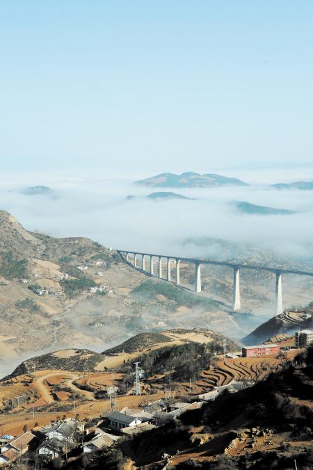 贵州威宁出现平流雾奇观 山脉若隐若现似仙境(图)