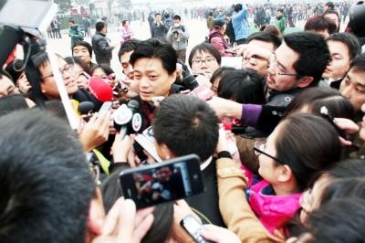 崔永元一到会场便被各路记者团团围住。 记者 刘冠霖 摄