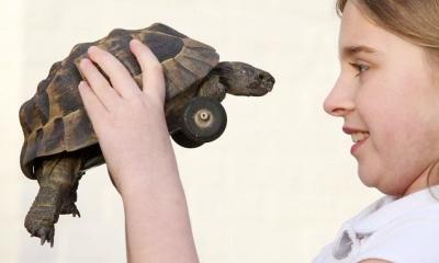 英国宠物龟被老鼠啃掉前腿 主人为其装上前轮(图)