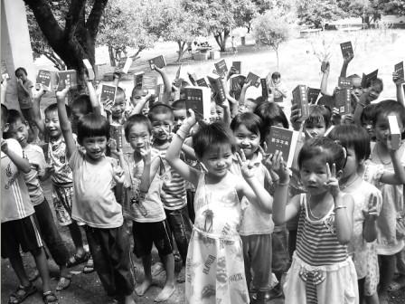2011年7月,广西乡村儿童获赠《新华字典》。 商务印书馆供图