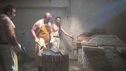 炉膛火热,把人脸映得通红。匠人抡起铁锤,在赤红的火星里挥汗如雨。打铁,淬火,百炼成钢。一把上好的古剑经过炼、锻、打、烧、淬等工艺之后,在阳光的照射下,泛起的层层光泽让人眼晕。