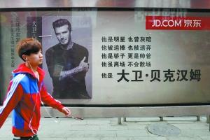 京东商城昨天宣布其新品牌“京东出版”的首部图书《大卫·贝克汉姆》正式问世。在东单路口北公交车站,新换上了这部图书的大幅站台广告。 本报记者 和冠欣摄