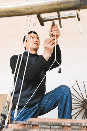 一有闲暇秦福涛就开始摆弄自己收藏的各种传统农具 (记者 杨力 摄)