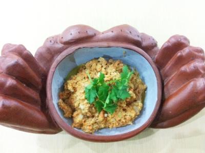 在将要起锅时,胡师傅还不忘关照:“起锅时再加入少许的香醋和黄酒会更香、更美味。”就这样,把一盘炒好的素蟹黄倒入螃蟹状的餐具里面,就大功告成了。据介绍,吃过的顾客都反映:“素食能吃出荤味儿,还不腻人,既有蔬菜的香又有螃蟹的荤味儿,比真蟹黄味道还要好。”实习生 李兴鹏 记者 孙炎