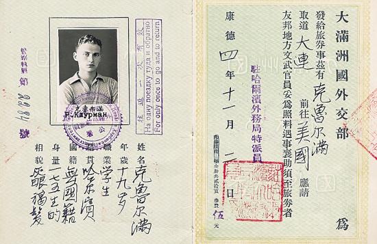 伪满时期“政府”替无国籍人士签发护照(图)