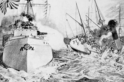 甲午海战中的场面(版画) 阿瑟·B·布朗作