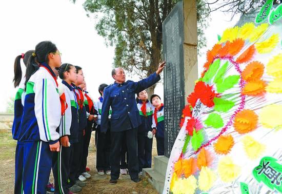 4月2日,王志杰为阜城县第二小学的学生讲述有关回民支队突围战的故事。今年58岁的王志杰是河北省阜城县纪庄革命烈士陵园的第二代守墓人,自从1993年父亲王梦北去世后,他就继承父亲遗志负责守墓,至今两代人已守护88位英灵近72载。据阜城县志记载,1942年春,侵华日军先后对冀中、冀南抗日根据地实施“铁壁合围”政策妄图消灭抗日力量。民族英雄马本斋带领的八路军冀中军区回民支队在掩护主力部队转移时,在阜城县纪庄一带与日寇相遇,全体将士浴血奋战,共歼灭日伪军300余人,胜利突破敌人防线,但88名英雄也为国捐躯。