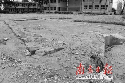 白鹤峰东坡祠旧址曾是惠州卫生职业技术学校(以下简称“卫生学校”)的校址。2012年,卫生学校搬迁到三栋的新校区,如今只有空荡荡的教学楼。根据史料记载,东坡祠遗址中心区域就是原卫生学校的塑胶跑道和篮球场。今年1月6日至1月17日,广东省文物考古所对东坡祠遗址进行了考古调查和勘探。