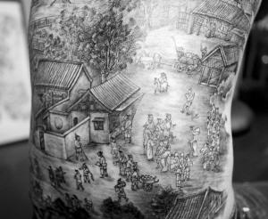 光想象都觉得疼吧——株洲刺青爱好者阿伟历时5天,首次实现了纹身版《清明上河图》。这5天里,他不仅要趴在椅子上一动不动,而且被针无数次刺入,后背经常痛得发烫。“不过看到背后这幅图,我觉得一切都值。”