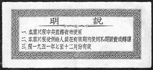 参展的有一张13两的小米公粮票(如上图),由中央人民政府财政部于1951年印制,系有价证券,存世不足5套。正面是一名驾驶员开着一辆联合收割机,正在收割庄稼;背面写着3条说明,敲定此粮票只限中央直辖省市内使用,限1951年7月至12月有效。