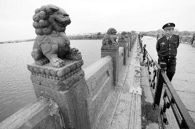 就古桥的保护,梁欣立提到,首先最不可取的便是修造假文物进行填补,这等同于变相破坏。其次,像卢沟桥、通州八里桥那样安装了护栏,虽说有碍观瞻,却构成了一道屏障,可以防范那些不安分的手;此外还应安装监控摄像头;而最有效的措施,就是派人24小时轮班严防死守。他最后强调,文物是历史的积淀、不可再生、不可复制,增强人们对文物的保护意识,是一切的根本。