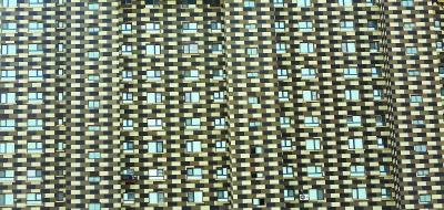 这是粉刷前的A座大楼南面外墙(4月16日摄)。日前,被网络热传的沈阳“乱码大楼”开始重新粉刷外墙。此前,当地媒体报道,两座大楼的图案使一些过往行人特别是患有密集物体恐惧症的人群不敢直视。新华社发