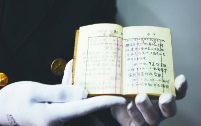 1949年4月21日,人民解放军百万雄师突破长江天险,拉开了渡江战役的大幕,作战日记真实地记录了这段难忘的峥嵘岁月。纪念馆工作人员戴着白手套,小心翼翼地拿出这本“袖珍日记本”,记者用尺子量了一下,小本子长9厘米、宽6.1厘米、厚0.9厘米,有90多页,形状大小和一张名片相仿。日记封面是牛皮纸,内页是账本剪裁的,用针线缝制,写作时间为1949年4月至1950年2月。虽然时间过去了60多年,日记上娟秀的钢笔字迹仍清晰可辨。