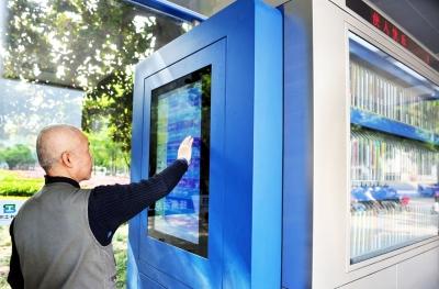 市民操作自助图书馆触摸屏。刘江瑞 摄
