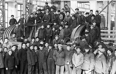 参与互动(0) 1958年12月,焦裕禄(前排左五)与厂领导、车间工人、技术人员和苏联专家在多绳卷扬机前合影留念