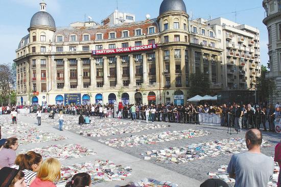 罗马尼亚举办图书开放之夜 广场摆放万册图书(图)