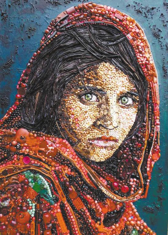 简帕金斯利用大多数人认为无用的钮扣和零碎东西,还原出一幅幅世界名画。