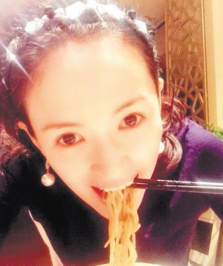 章子怡吃炸酱面庆祝。 (资料图片)